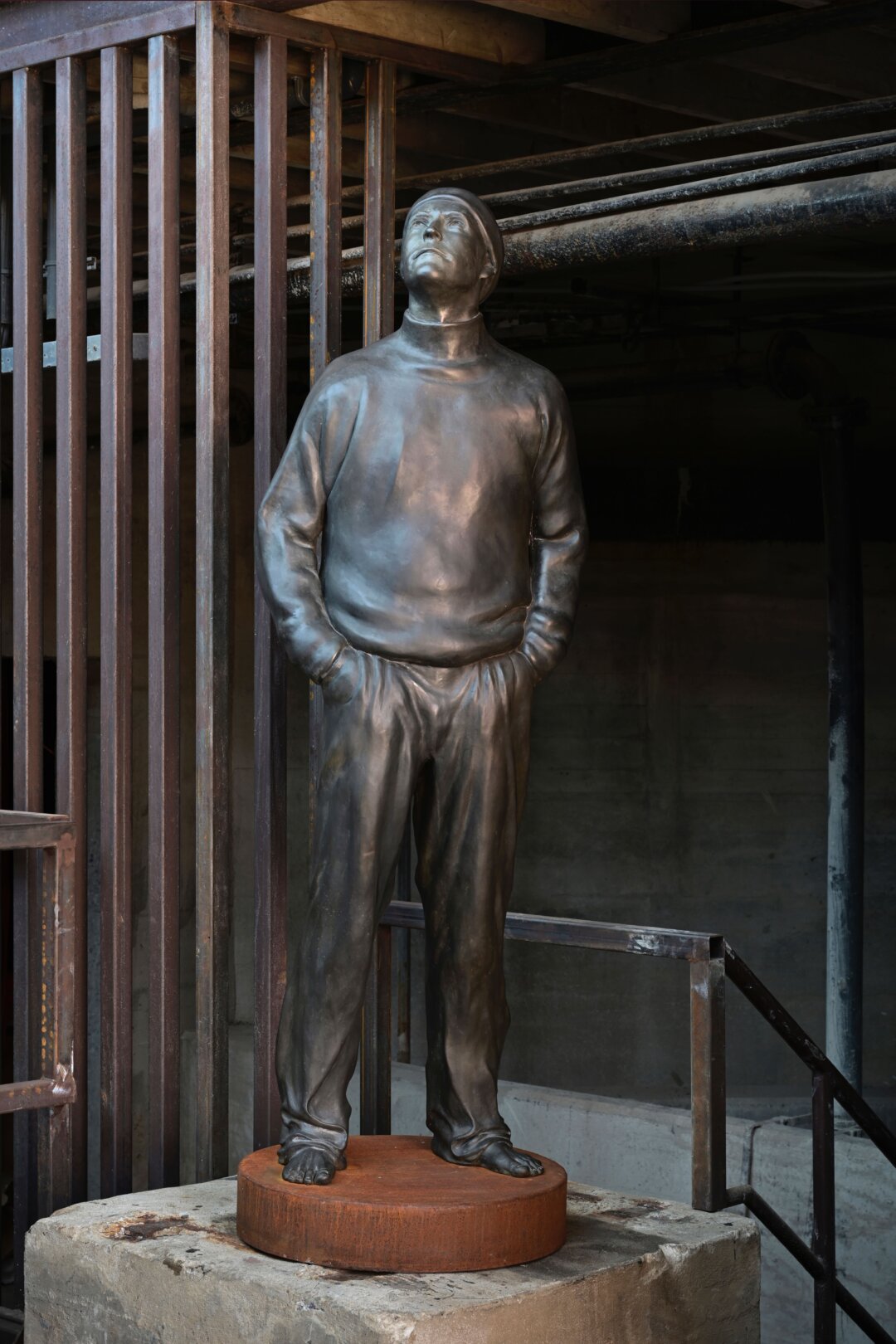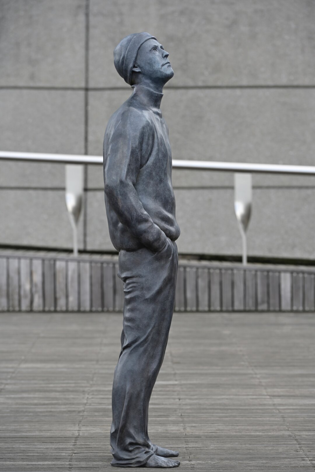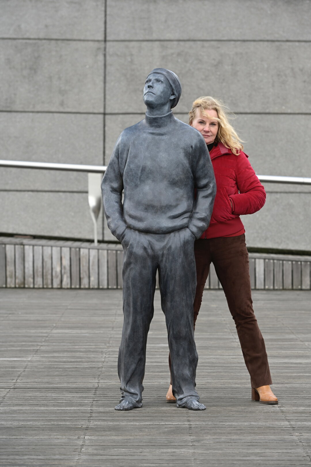 ” Lighthouse keeper” made in commission. Life size bronze sculpture for the old lighthouse in Harlingen. He lives in a small house at the foot of the lighthouse and walks out in to the garden, to check the light. Brons, 2023 Edition: 1/3 1.85 m