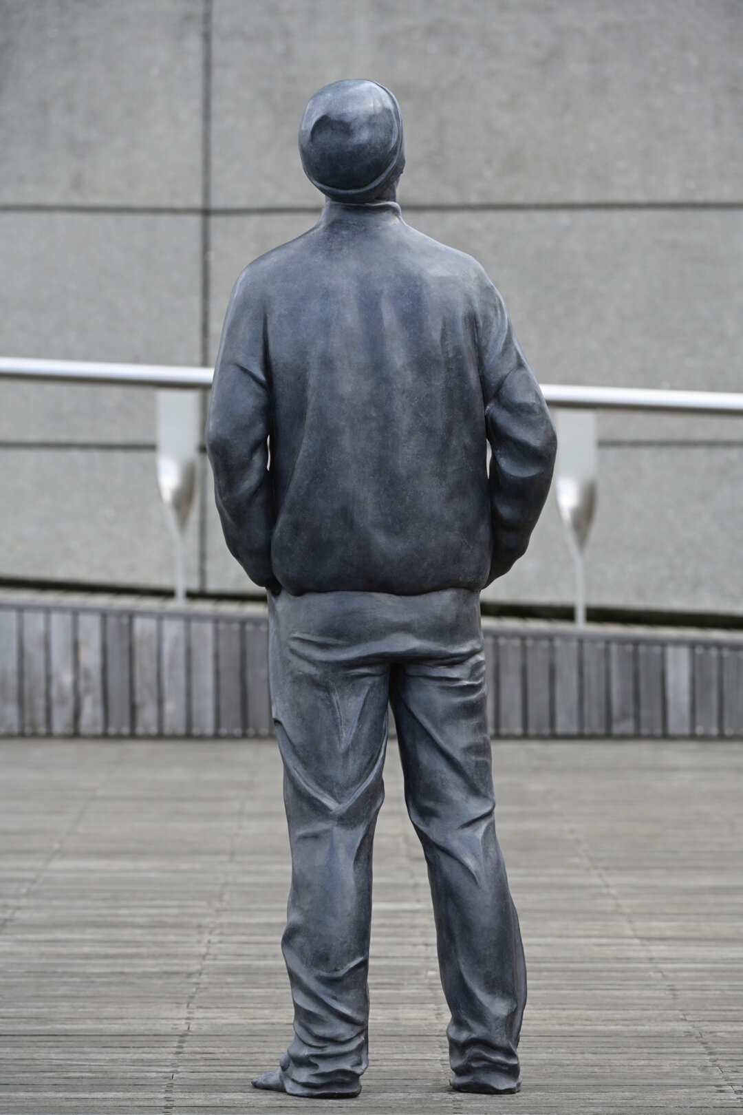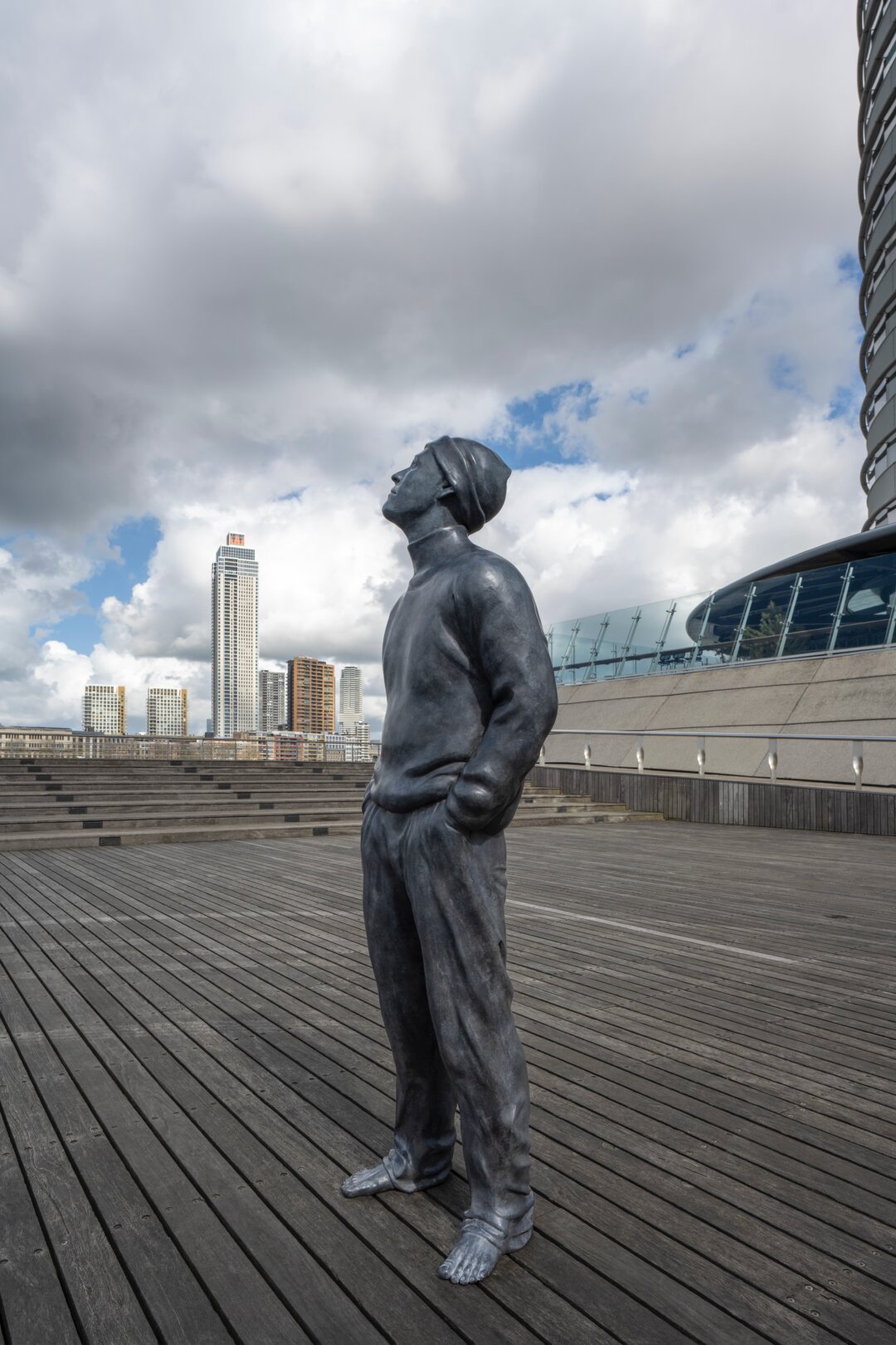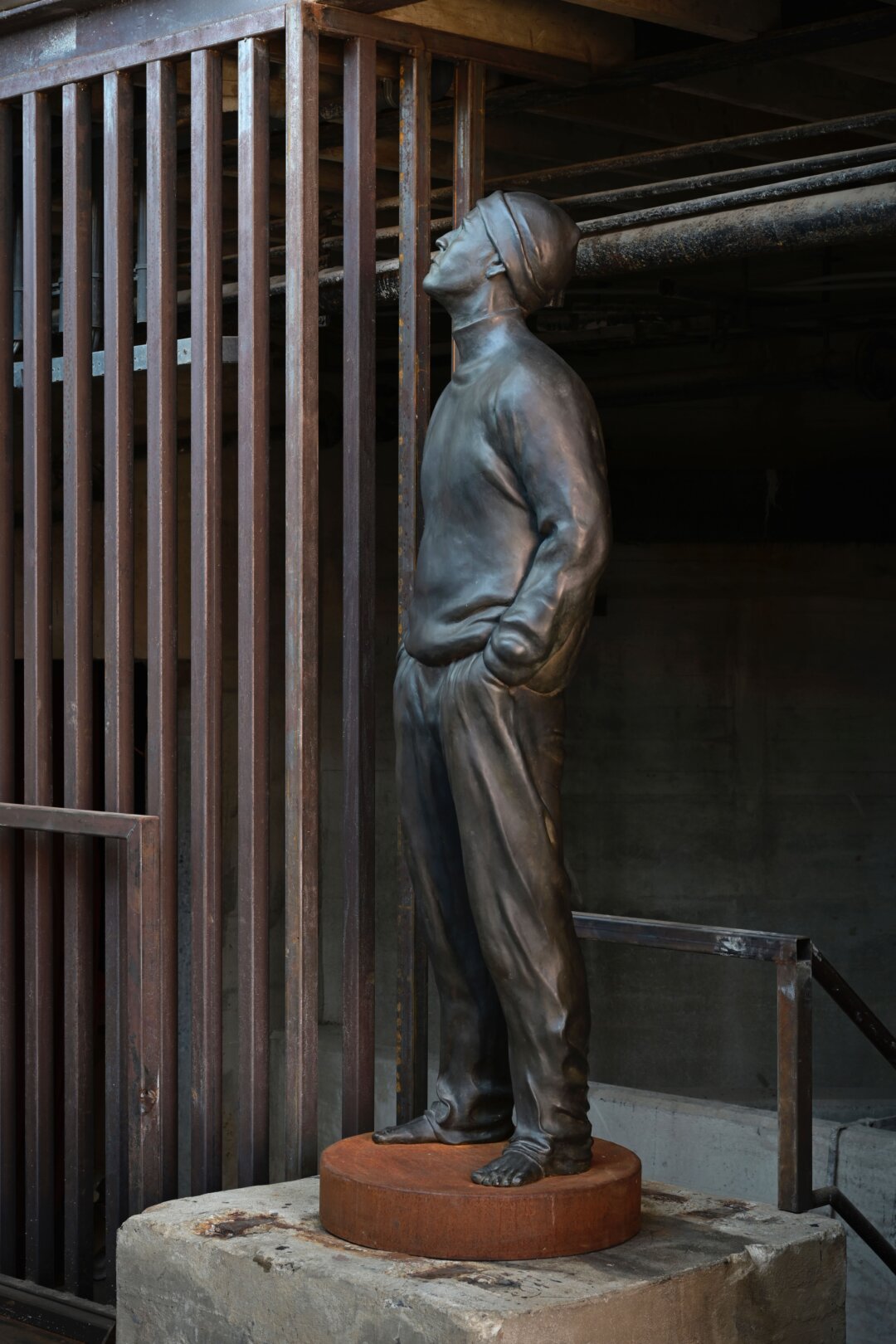 ” Lighthouse keeper” made in commission. Life size bronze sculpture for the old lighthouse in Harlingen. He lives in a small house at the foot of the lighthouse and walks out in to the garden, to check the light. Brons, 2023 Edition: 1/3 1.85 m